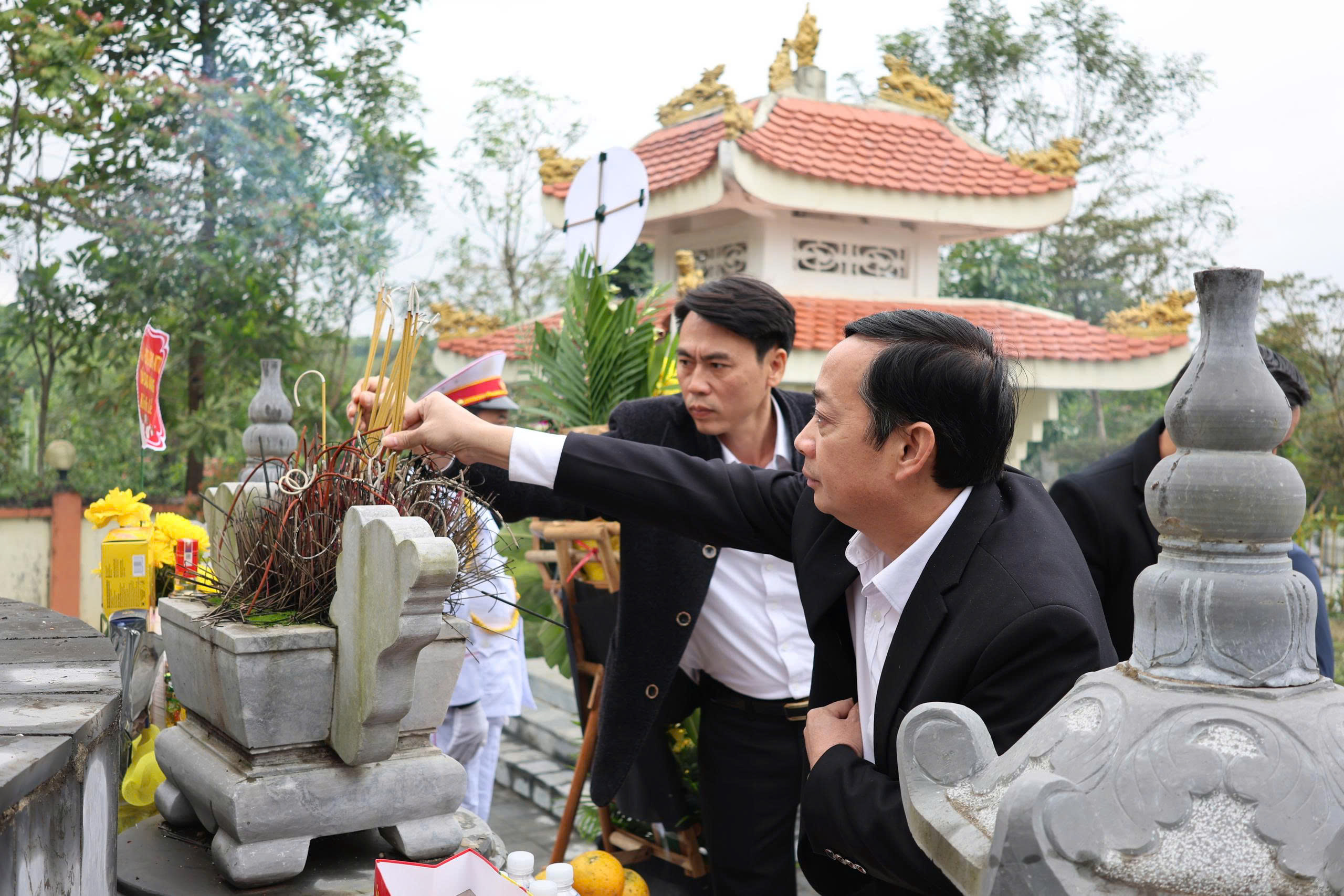 Tại nhà bia tưởng liệm liệt sỹ thôn Xuân Tâm, nhà bia tưởng niệm các liệt sĩ tại thôn Bột Thượng, thôn Bàn Thạch 2; nhà bia tưởng niệm các liệt sĩ tại thôn Thọ Lâm; nhà bia tưởng niệm các liệt sĩ tại thôn Đồng Luồng, trong không khí trang nghiêm, đoàn đại biểu đã thành kính dâng hoa, dâng hương và dành một phút mặc niệm để tưởng nhớ, bày tỏ sự biết ơn, tự hào về các Anh hùng liệt sỹ - những người con ưu tú của quê hương đã ngã xuống để bảo vệ độc lập dân tộc.